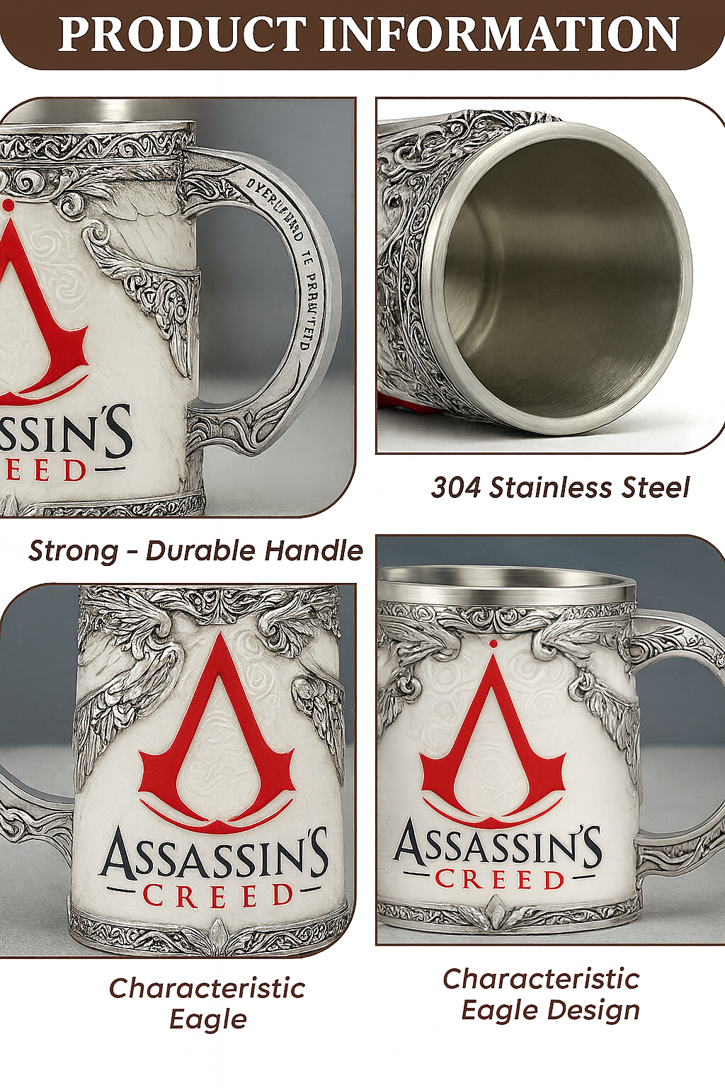 Crafted by hand with premium materials, each mug features sharp details and a unique finish made for true Assassin’s Creed fans. Built for daily use, built to last, and designed to stand out in any collection. A perfect gift and a must-have for anyone who loves the creed.